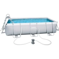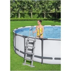 GRE Stahlwandpool Oval High Line 610x375x132 Cm, Stahl 0,45 Mm Holzoptik, Folie 0,4 Mm Blau, Overlap