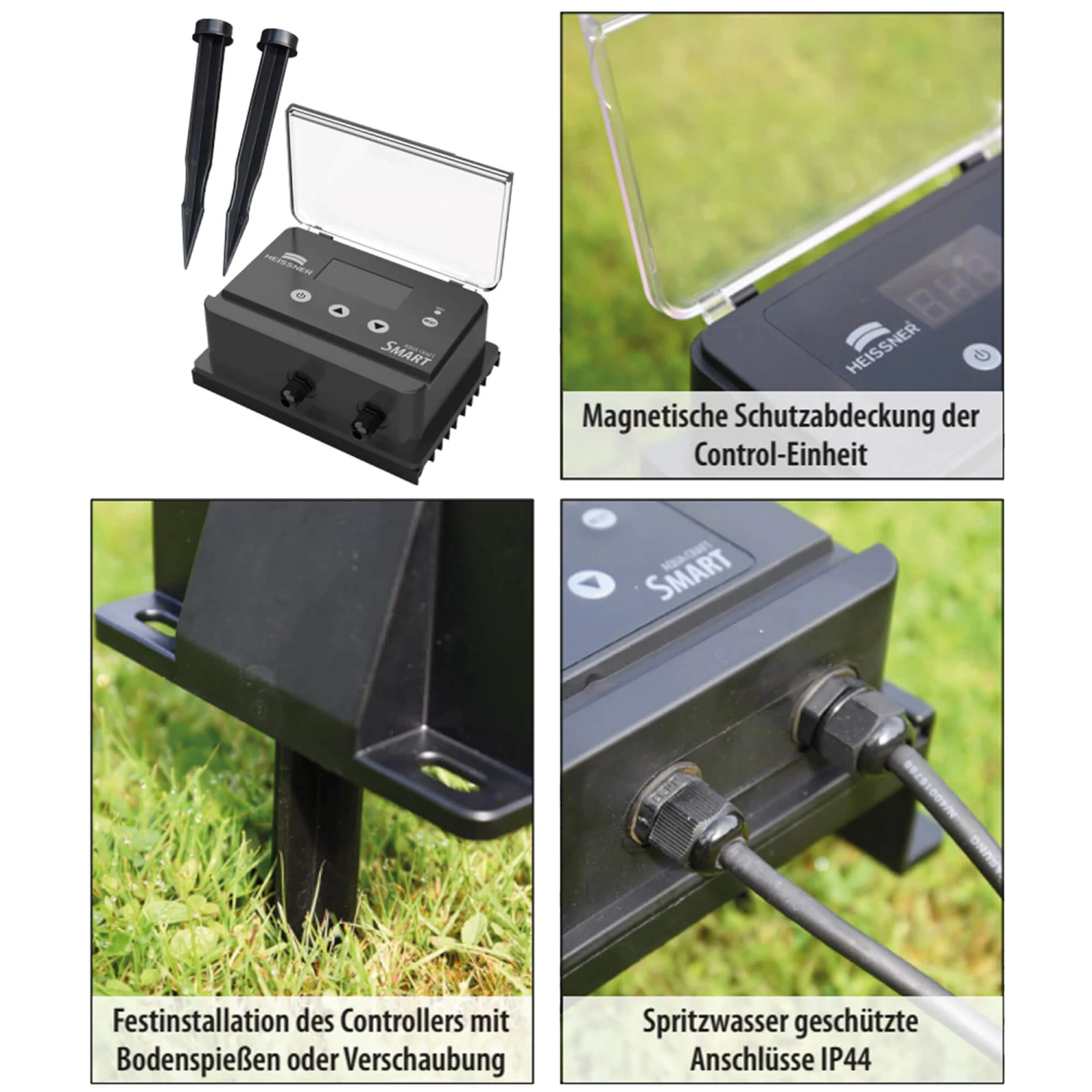 Der Externe Controller kann mit dem Bodenspieß in den Rasen gesteckt werden oder mit der Wandmontagehalterung an die Wand geschraubt werden.
