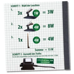 Zum Anschluss wird zusätzlich ein Transformator (Trafo) benötigt. Diesen bitte je nach gesamt Wattleistung dazu bestellen.