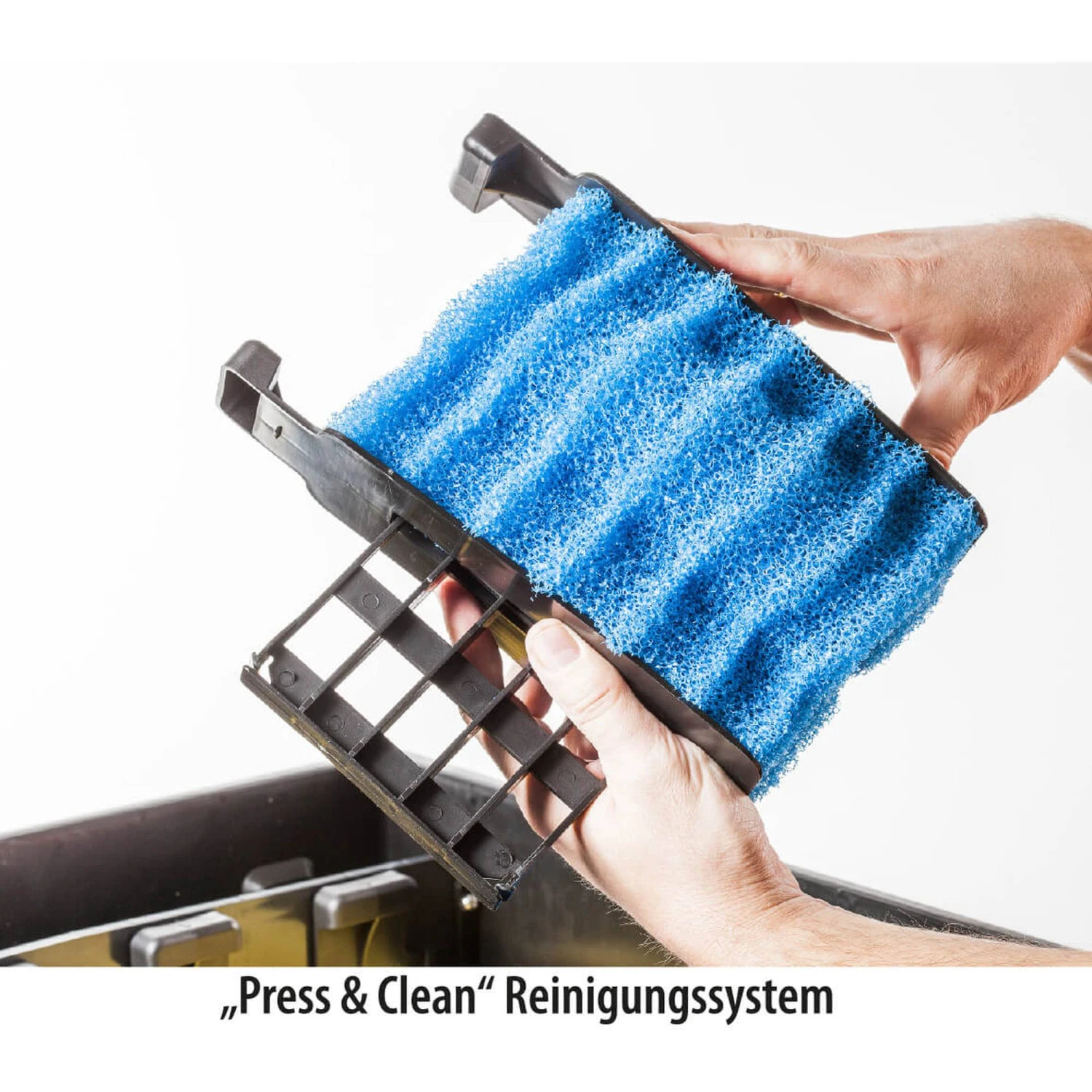 - Feinporiger Schwammfilter zur mechanischen Reinigung