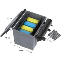 Das Heissner Teichfilter Set FPU16000-00 ist ein Durchlauffilter mit Teichpumpe und UV-C Teichklärer.