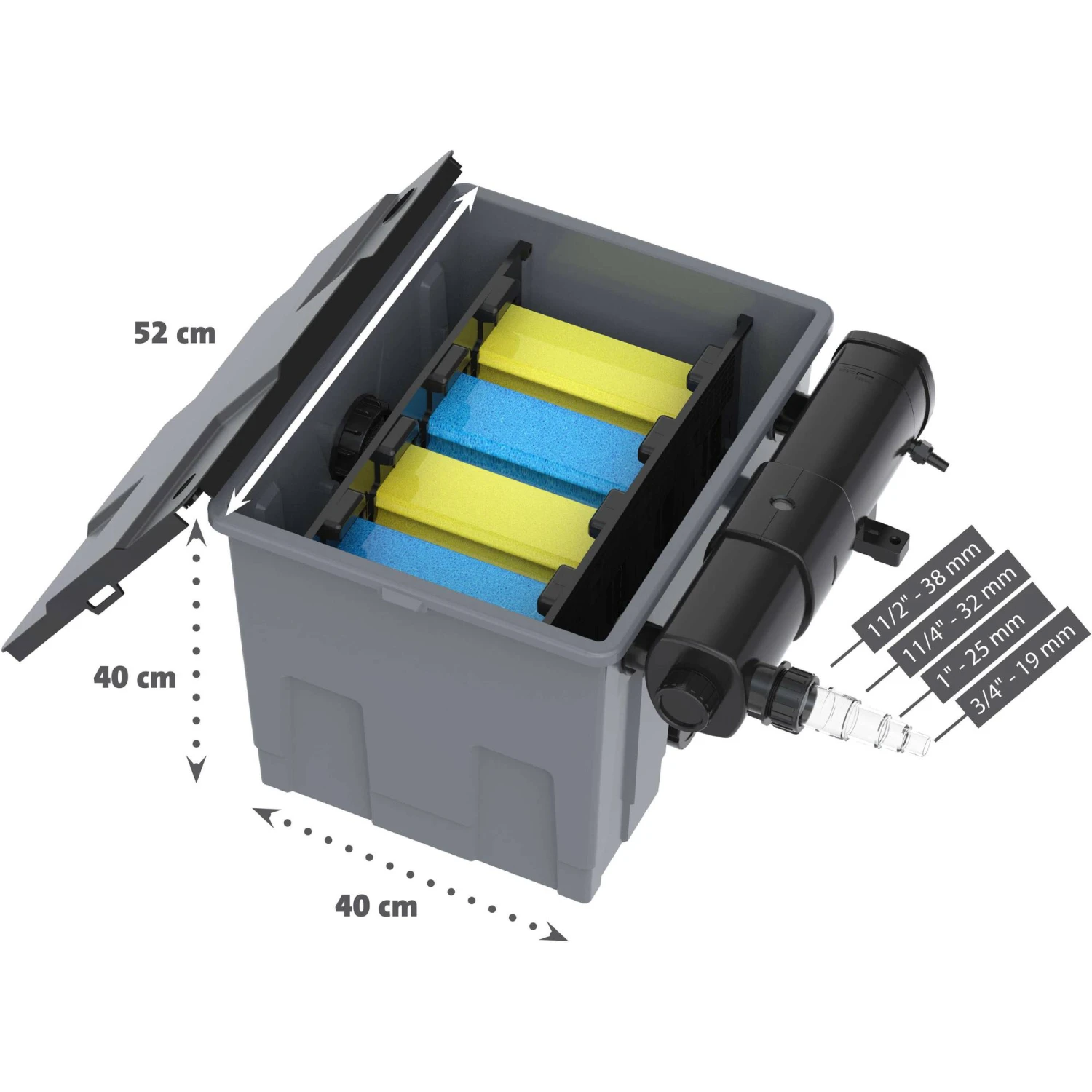 - Geeignet fĂĽr Teiche bis 16.000 L (8.000 L mit Fischbesatz)