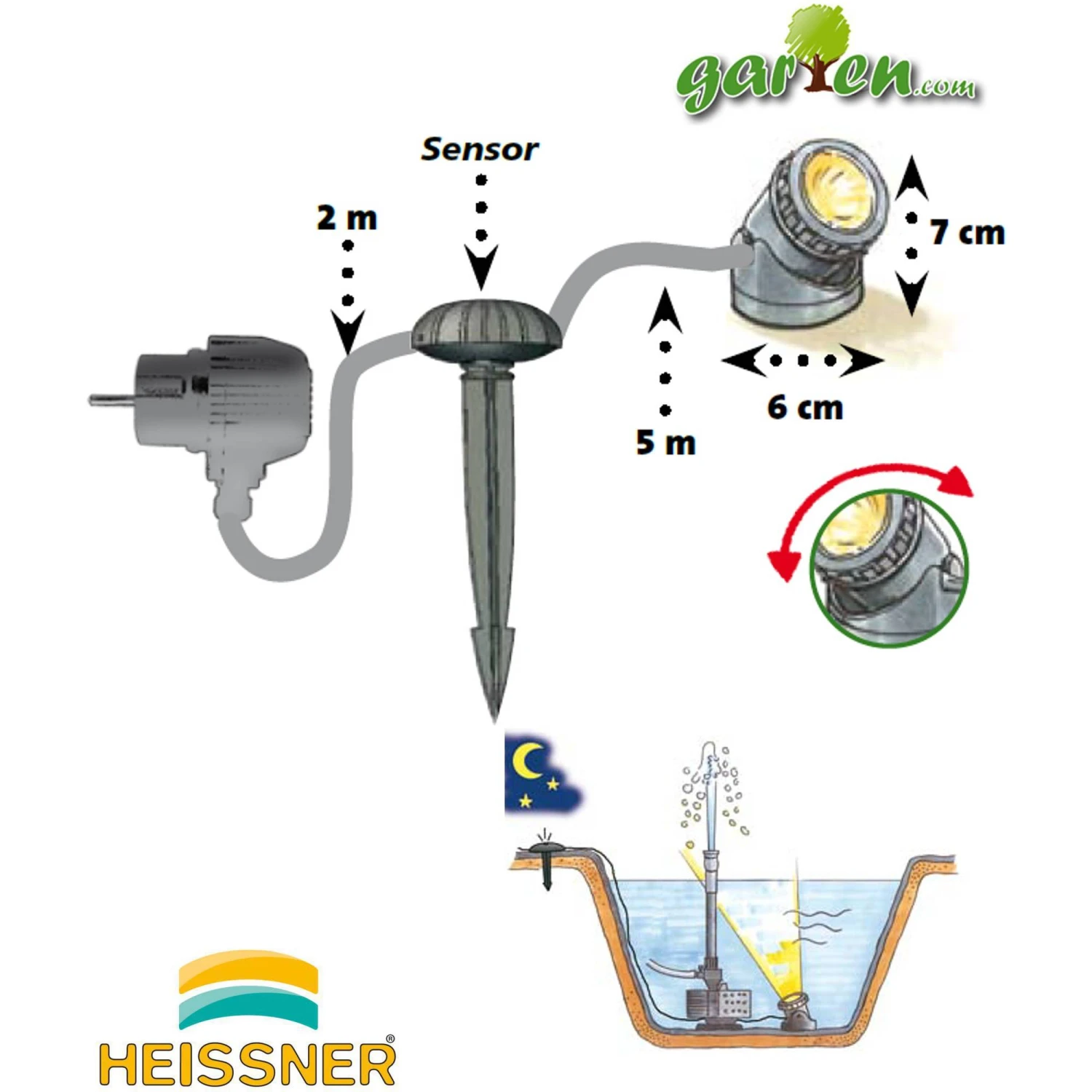 Aqua-Light kann über und unter Wasser verwendet werden. Dadurch ideal als Teichbeleuchtung, aber auch als Gartenlicht verwendbar. Platzieren Sie AQUA