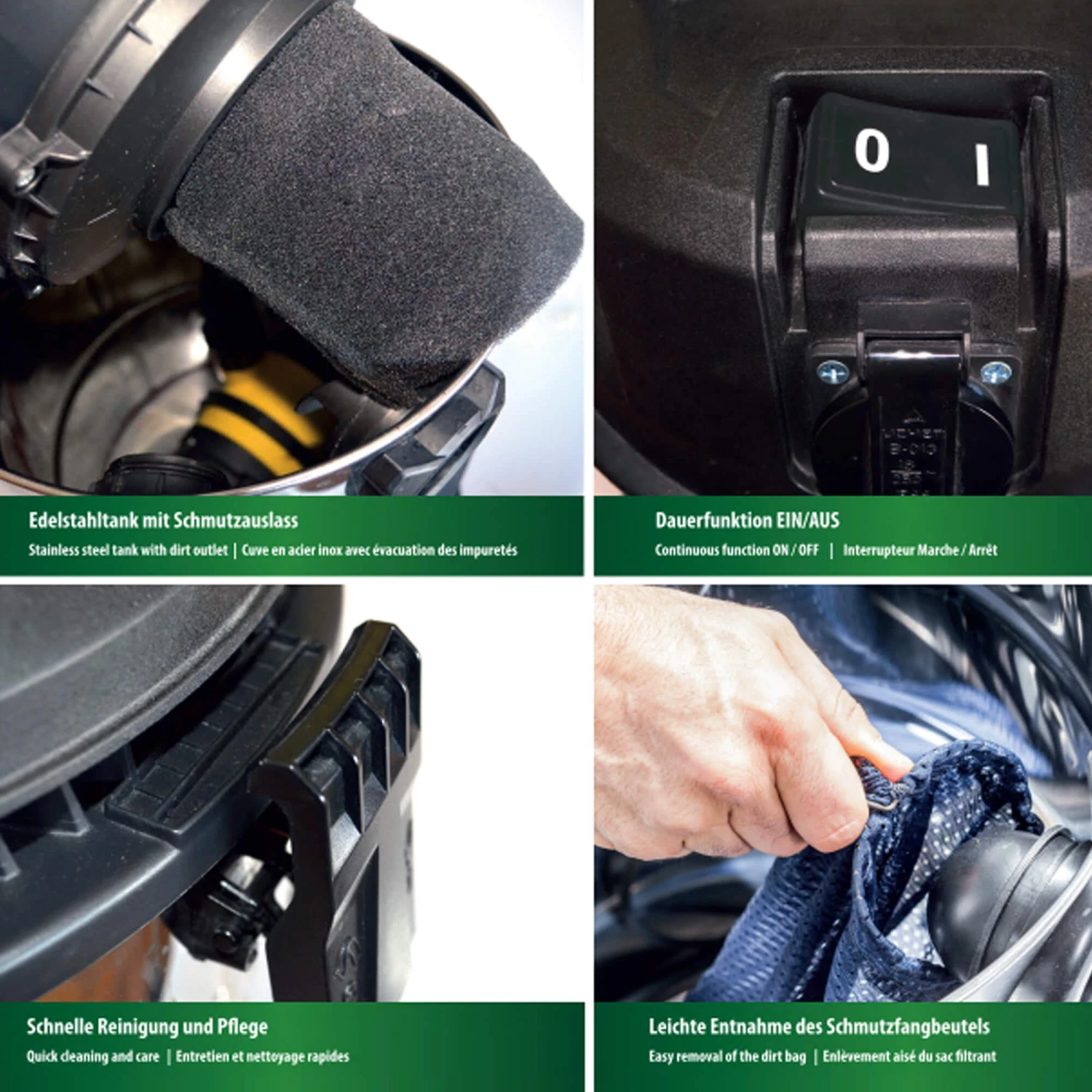 – Grobschmutztrennung im Schmutzfangbeutel mit Schnell-Entleerung