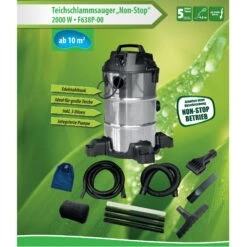 Im Laufe der Zeit sammelt sich in jedem Gartenteich Teichschlamm an. Dies ist ein natürlicher Prozess. Verschiedene organische Stoffe zersetzen sich am Teichgrund. Aus diesen Ablagerungen kann sich Fäulnis entwickeln. Wird diese Ablagerung nicht entfernt wird die Wasserqualität stark beeinträchtigt. Alle Teichbewohner (Wasserpflanzen, Fische und andere) leiden unter diesen Verunreinigungen. Mit der regelmäßigen und konsequenten Teichpflege kann der Schlamm in Grenzen gehalten werden. Wenn sich die Ablagerungen gebildet haben, gehen sie diesen mit dem Hochleistungssauger F638P-00 an den Kragen, damit alle Teichbewohner wieder aufatmen können.