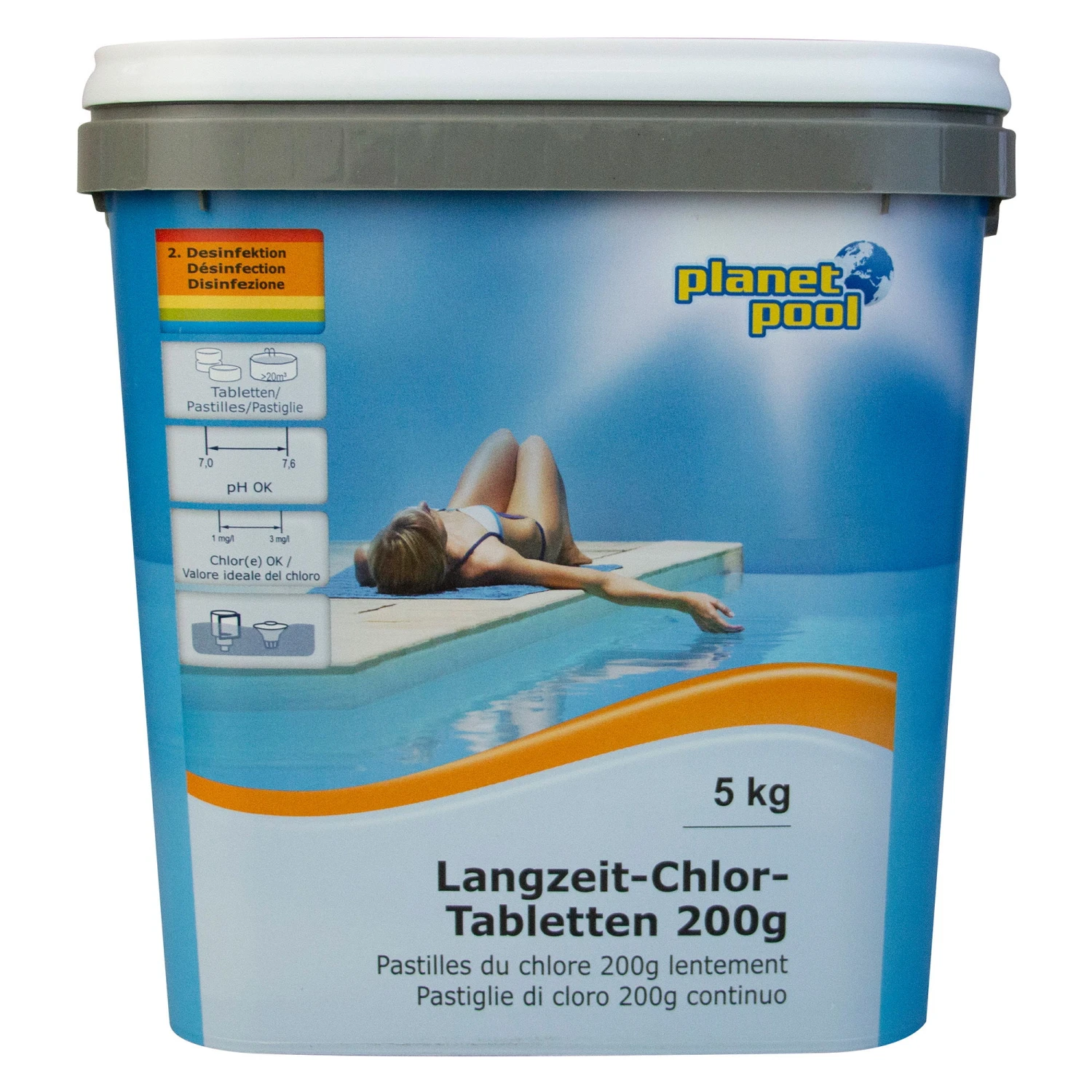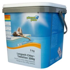 Die 200 Gramm Langzeit-Chlor-Tabletten von Planet Pool bestehen aus einer organischen Chlorverbindung mit Aktivchlor. Die Tabletten sind langsam und rückstandsfrei löslich und wirken in Unabhängigkeit von der Wasserhärte.Stabilisierend gegen zu raschen Chlorabbau und pH-neutral! Die Tabletten sind einzel eingesiegelt zur leichteren Handhabung. Die perfekte Lösung zur Dauerchlorung während der Poolsaison.