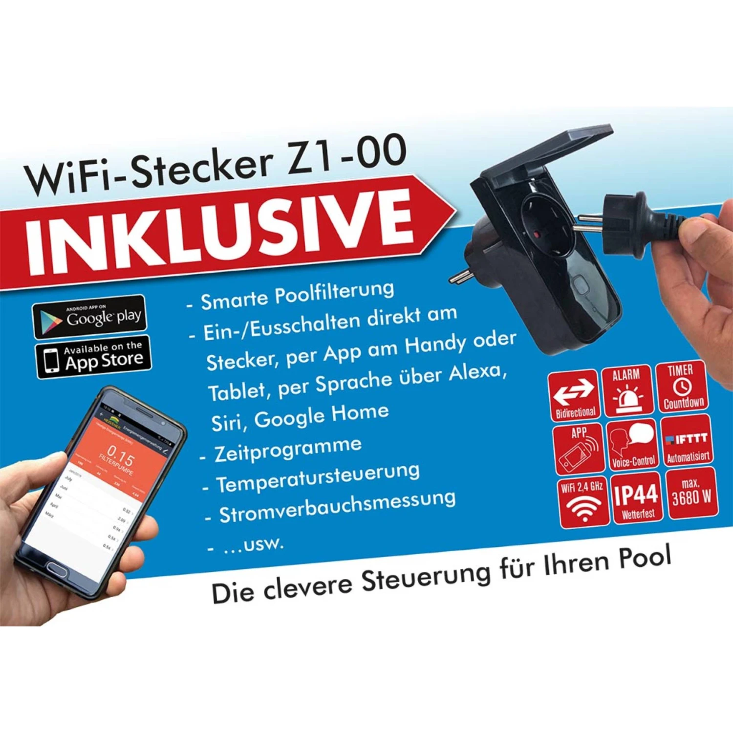 - Bedienung per Gratis-App (Android und IOS)
