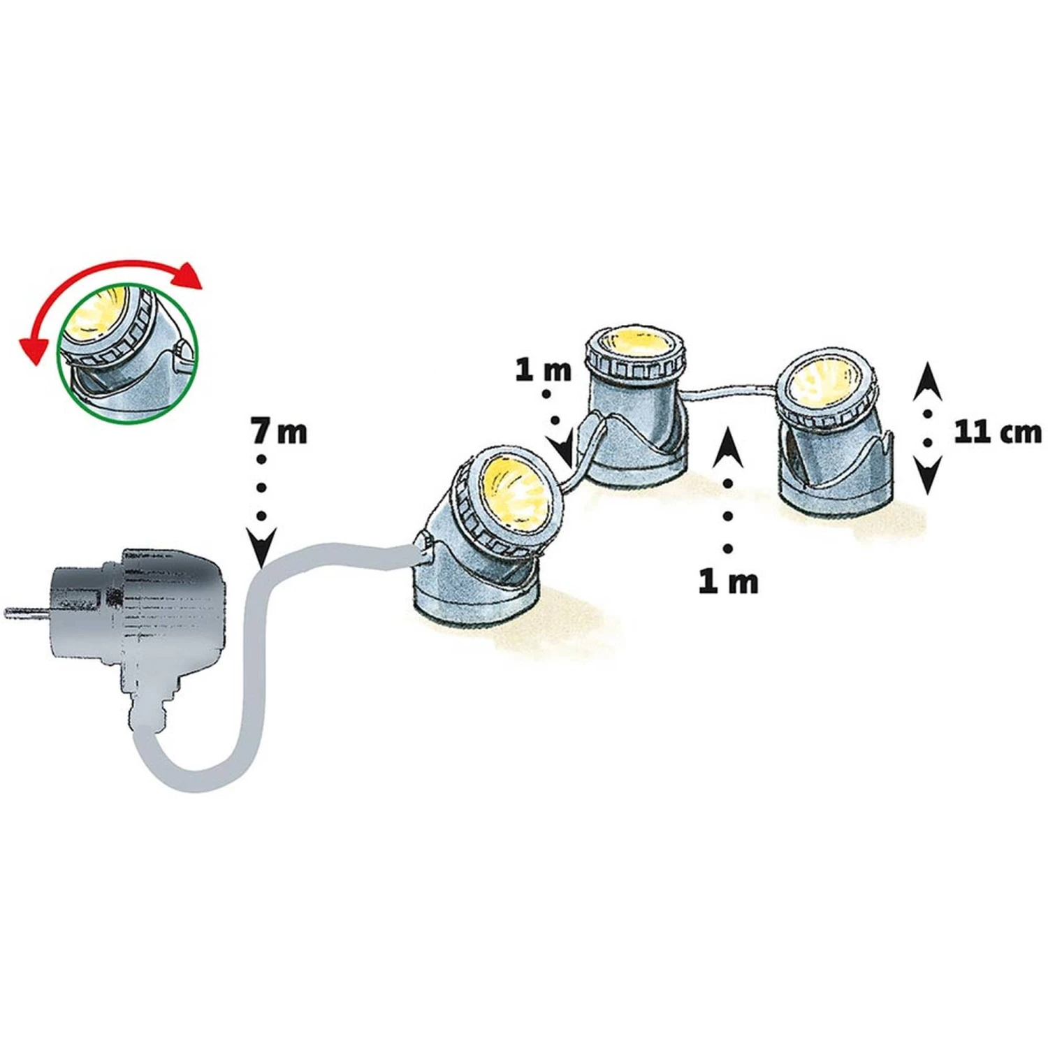 – 7m Anschlußleitung zwischen Trafo und erster Lampe