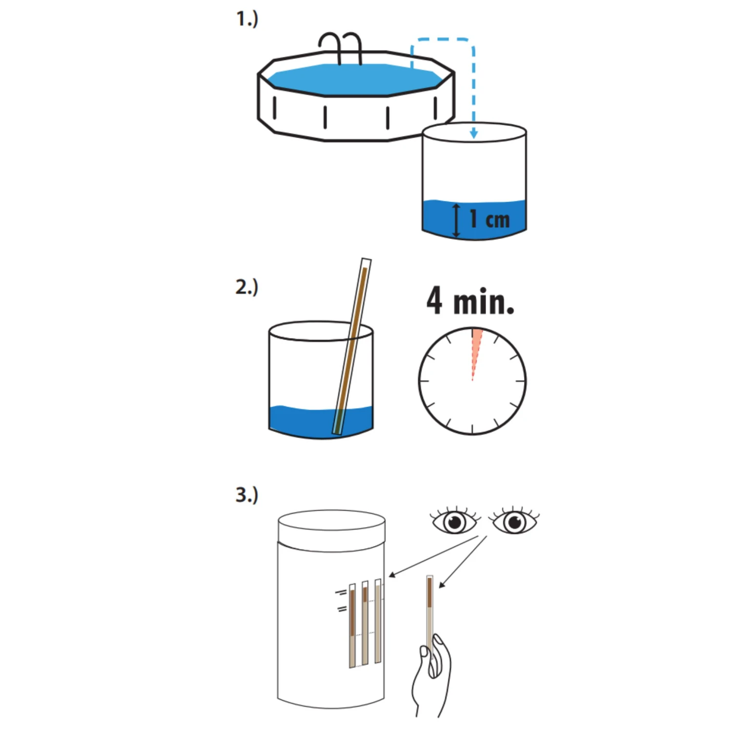 - Teststreifen für ca. 4 Minuten eintauchen.