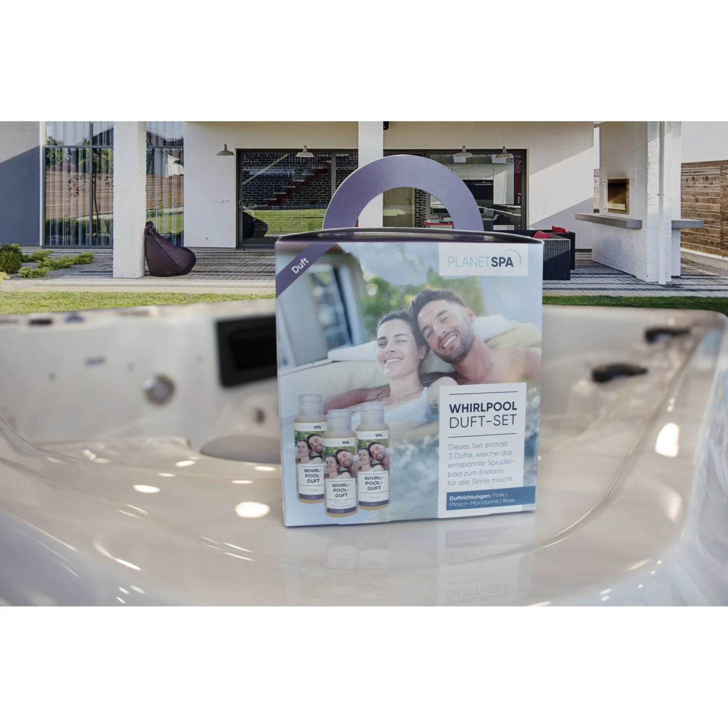 Drei Düfte, welche das entspannende Sprudelbad zu einem noch intensiveren Erlebnis für alle Sinne macht. Die wohltuenden Duftrichtungen Pinie, Pfirsich-Mandarine und Rose in Kombination mit dem angenehmen Gefühl, in warmem Wasser zu baden sorgen für eine tiefe Entspannung für Geist und Körper.Â