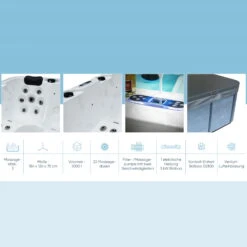 Der Whirlpool verfügt über eine Thermoabdeckung für den Outdoorbereich. Diese sichert und erleichtert die Wartung deines Whirlpools und verhindert gleichzeitig einen Wärmeverlust.